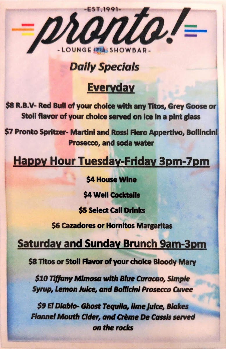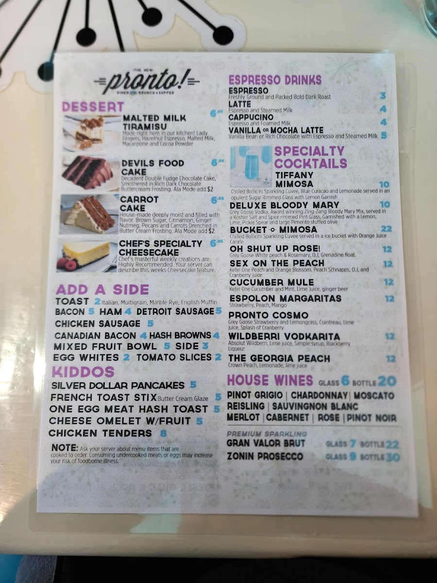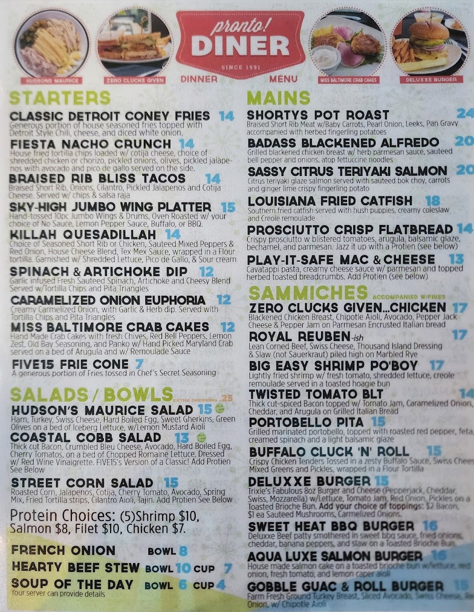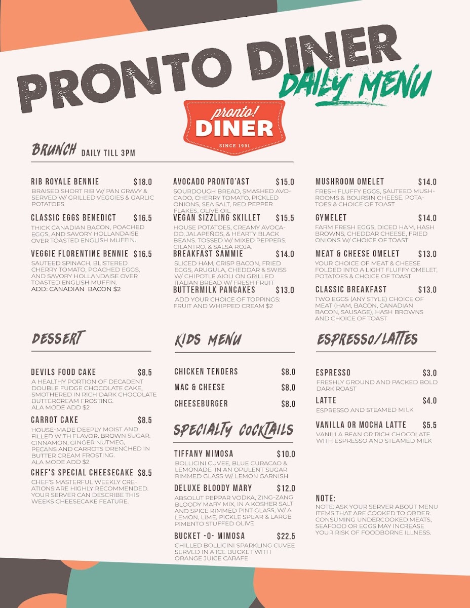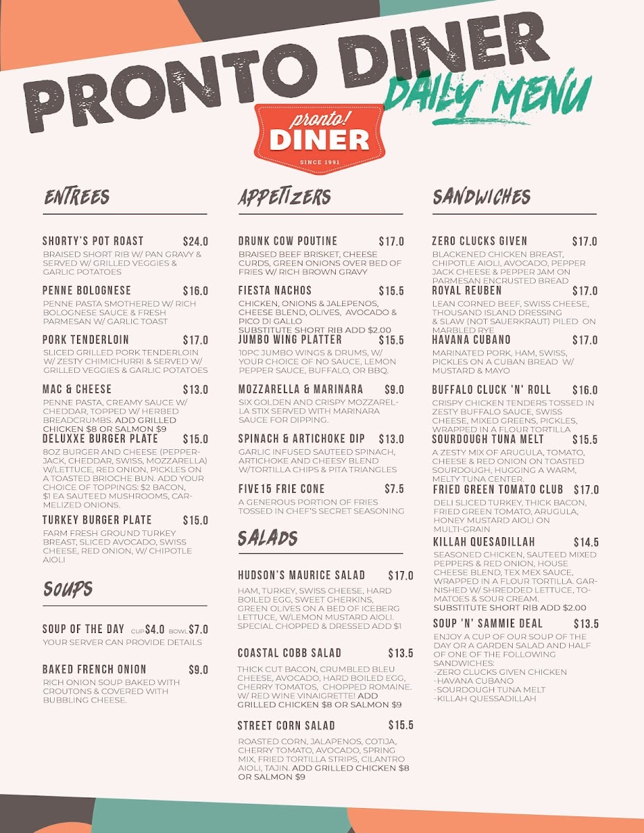 Pronto! Diner Menu